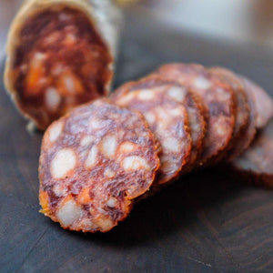 This salami is artisan made and comprised of heritage pork, Trapani Sicilian Sea Salt, a blend of Smoked Spanish Paprikas, Telicherry Black Pepper and Cleto Chiarli Lambrusco red wine.